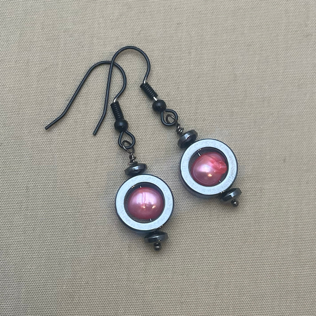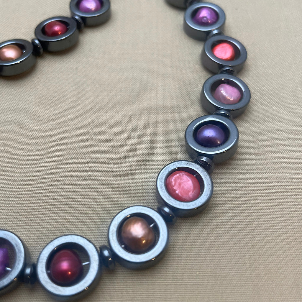 Antal pärlor: 28 st hematitcirklar med sötvattenpärla.